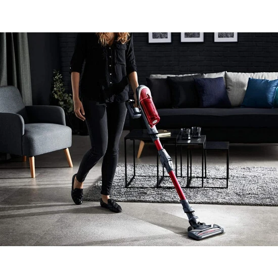 Das innovative Design bietet eine Düse und ein Rohr, die aufrecht stehen – für außergewöhnliche Bequemlichkeit, wenn Sie eine kurze Pause vom Staubsaugen brauchen oder wenn Sie Oberflächen reinigen.